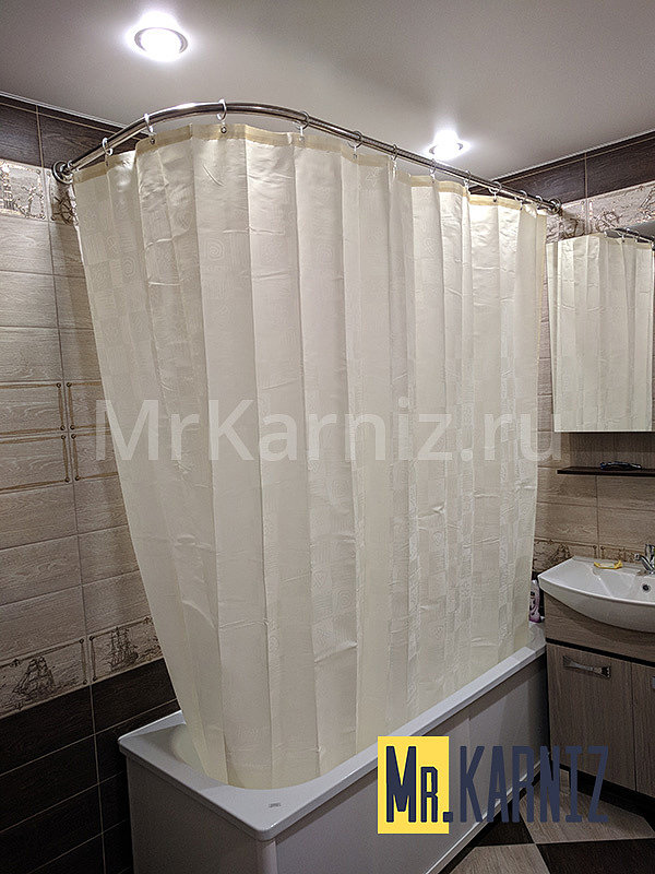 Если вы столкнулись с подобной проблемой, компания Mr. Karniz готова помочь. У нас можно купить асимметричные карнизы для ванной или заказать изделие по индивидуальным размерам.