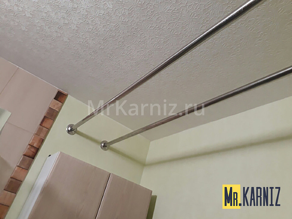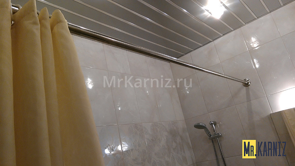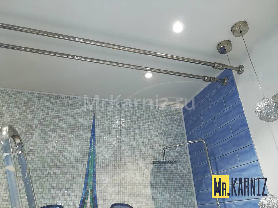 Карниз или штанга для ванной Белрадо может быть выполнена на заказ по индивидуальным параметрам. Для этого необходимо сообщить ее желаемые размеры. Крепится деталь к стенам комнаты в двух местах. Также можно заказать дополнительное третье крепление карниза к потолку. Места крепления аккуратно закрываются колпачками. Шторка вешается на саму штанги при помощи колечек.