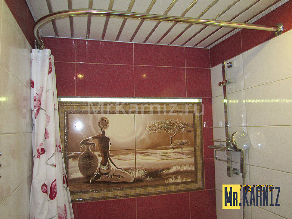 Прямой карниз отлично сочетается с ваннами стандартных форм.
