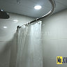 - Алюминиевый – это прочная конструкция, которой не страшна коррозия. Устойчива к перепаду температуры. Выбор в цветовой гамме не большой: серый и металлический цвета, поэтому могут не вписаться в дизайнерский замысел. Из-за своей легкости, такой держатель для шторы, может со временем провисать под тяжестью мокрой шторы. А также, нужно учитывать громкий звук, что возникает при трении колец об штангу.